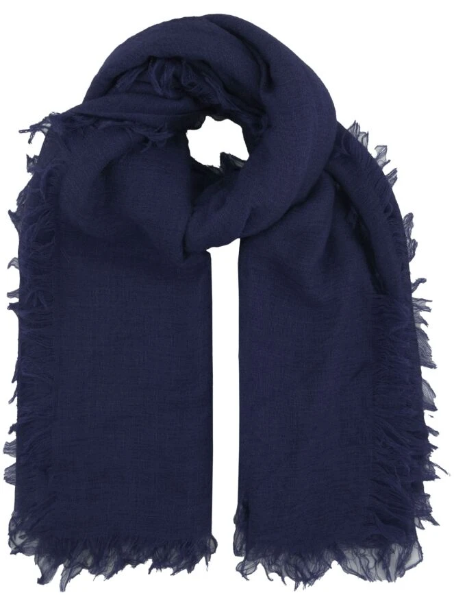 Ein luxuriöser, leicht transparenter Schal von Annette Görtz in kobaltblau. Die Kanten des Schals sind fein ausgefranst. Dieser Schal kann mit der Hand gewaschen werden.