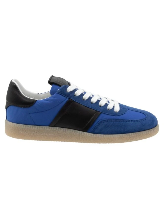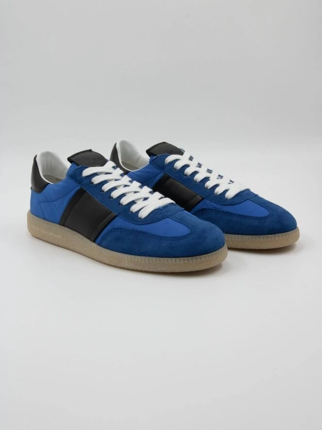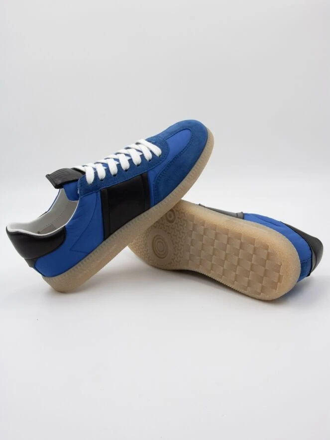 Der Vorfuß besteht aus Wildleder mit Fallschirmstoff. Der Stoff ist entlang der Seiten des Sneakers vorhanden. An beiden Seiten und an der Ferse ist geschmeidiges schwarzes Leder verarbeitet. Das Innere des Sneakers ist mit weißem Leder gefüttert. Die Sohle ist in einer natürlichen Farbe gehalten.