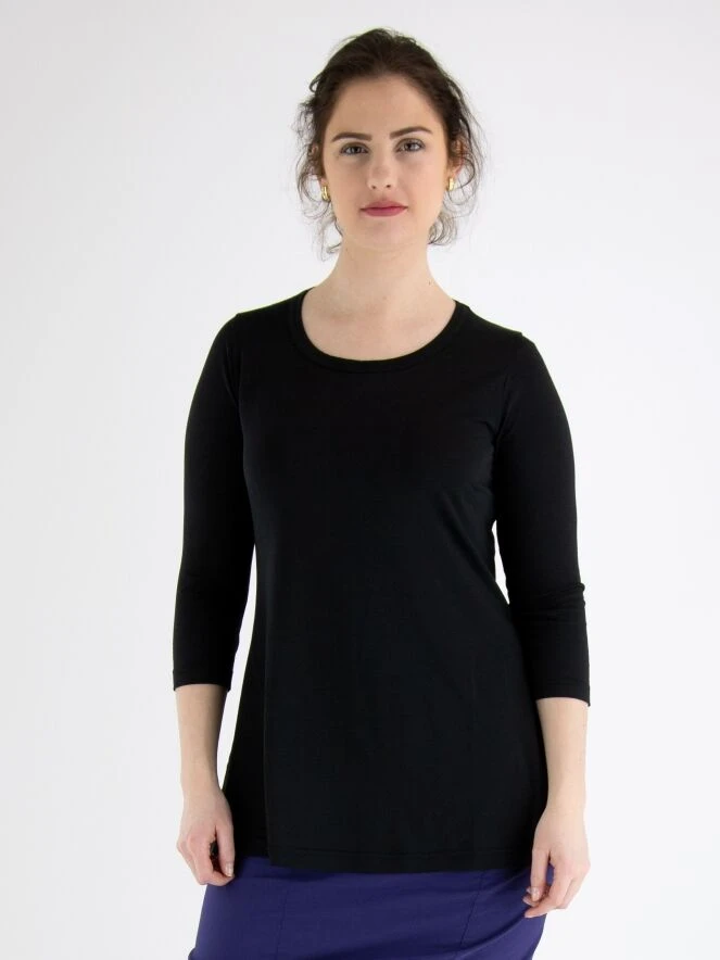 Ein Shirt von Rundholz Black Label in Schwarz. Das Shirt hat einen Rundhalsausschnitt und halblange Ärmel. Dieses Shirt kann bei 30 Grad gewaschen werden.