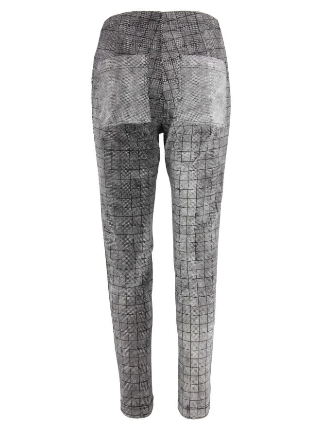 Eine Hose von Rundholz Black Label mit einem vielfältigen grafischen Karomuster in Schwarz und Weiß. In der Taille befindet sich ein schmaler elastischer Bund. Diese Hose kann bei 30 Grad gewaschen werden.