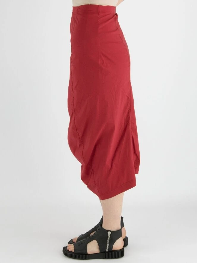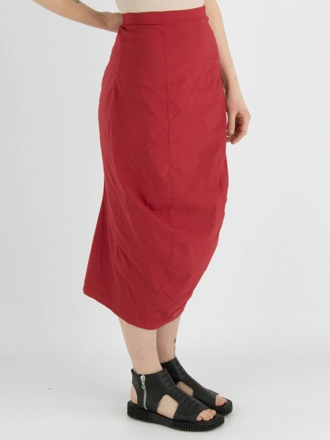 Ein Rock von Rundholz Black Label in Rot. Der Rock hat einen elastischen Bund. Er läuft nach unten hin schmal zu und ist ungefüttert. Dieser Rock kann bei 30 Grad gewaschen werden.